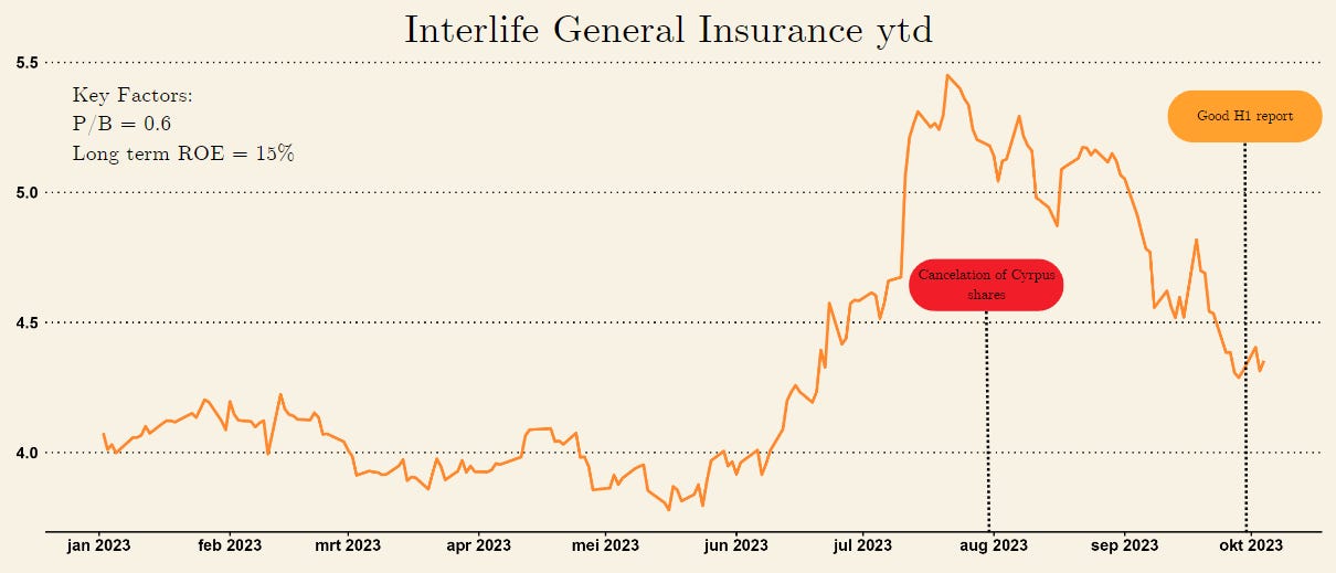 Finally, let's discuss Interlife General Insurance S.A., a Greek insurance company specializing in non-life insurance. My pitch centers around Interlife's remarkable historical performance, boasting one of the best combined ratios in the insurance industry. However, last year, their results were significantly impacted by inflation affecting underwriting and a substantial drop in the value of their bond portfolio due to a sharp increase in interest rates.